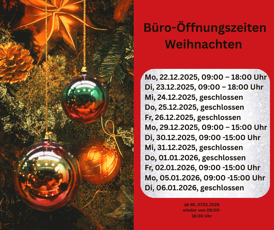 Während der Weihnachtszeit haben wir unsere Öffnungszeiten angepasst 🎄